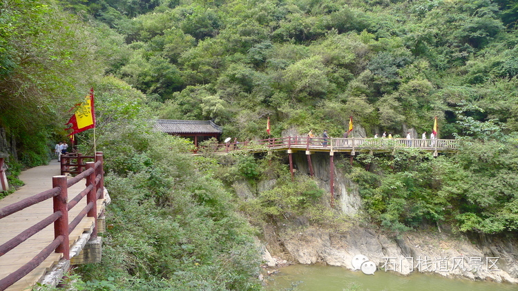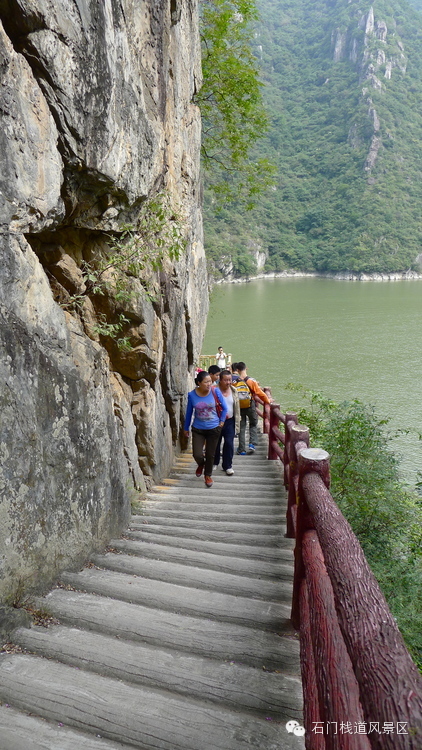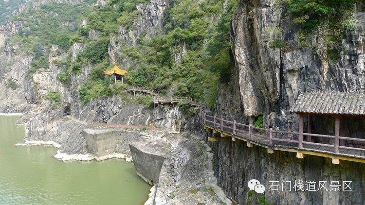 历史上的褒斜栈道是中国西汉三国时期伟大的交通工程,它南起汉中褒谷口,北到眉县斜峪关,故称为褒斜栈道。上世纪六七十年代,因修建石门水库,这条古老的栈道遗迹被淹没水下。今天的石门栈道是在古栈道的基础上将路基抬高约80米修建的,它不是历史遗迹,而是以现代建筑形式复原了的栈道景观。