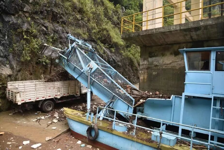 每逢汉中下大雨,褒河上游山洪伴随着大量的树枝、杂草等漂浮物沿河道进入石门水库坝前水域,为了给游人还去一库碧水蓝天,景区专门购买清漂船及相关清漂设备,并制定了清漂计划,落实责任人,执行日清理制度,并多次安排景区员工用清漂船对库面漂浮物清漂,有时为了完成清漂工作,他们顶着烈日高温、汗流浃背,持续工作很多天,经过努力库区又恢复到碧水荡漾、风光迷人的画面;景区船务部的人员为配合水质采样工作,有时又恰逢旅游假期,他们不得不白天上班,晚上开着游艇带着手电在库区工作。