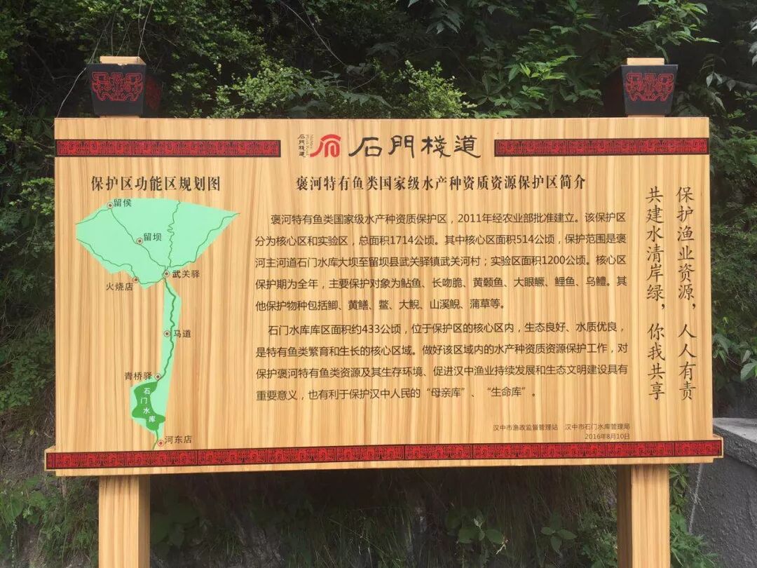 景区林木茂盛、动植被种类繁多,是特有鱼类繁育和生长的核心区域,景区制定实施多项生态环境保护措施,2011年农业部批准建立了褒河特有鱼类国家级水产种资质保护区。保护区总面积1714公顷,主要保护对象为鲇鱼、黄颡鱼、大眼鳜、鲤鱼、乌鳢。其他保护物种包括鲫、黄鳝、鳖、大鲵、山溪鲵、蒲鱼等。景区配合汉中渔政等相关部门举行汉中鱼类增殖放流活动,净化了河道水质,保护了褒河流域的生态平衡;近年来库区环境有很大提升,很多珍稀野动物陆续出现在人们的视野中,期间也碰到很多因为受伤而被工作人员发现的动物:如国家二级保护鸟类-白鹭、麂子等,随后他们将这些受伤的动物进行救治及时移交给汉中动植物保护站,为了保护石门库区生态环境安全,景区每年都会组织员工进行防火、防汛、安全消防演练,增强大家的安全防范意识。