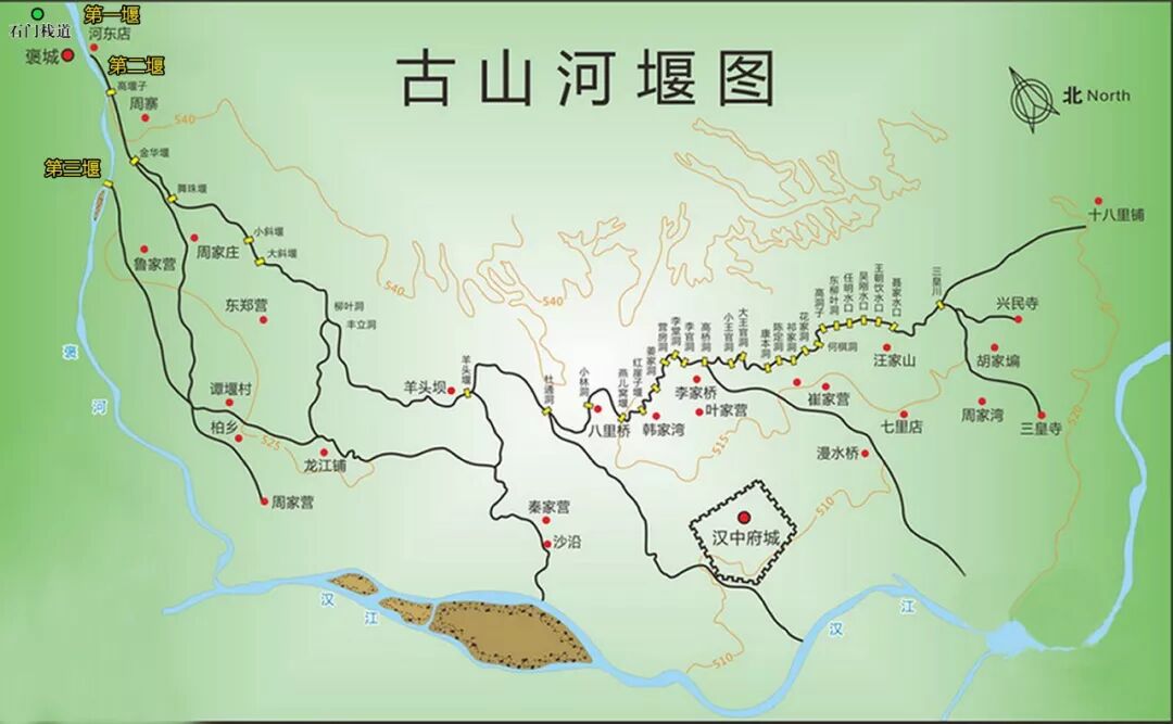 石门栈道景区北距汉中市市区15公里,位于汉台区、勉县、留坝县交界处的褒谷口。这里是褒斜道的南口,其处于两座大山之间,清澈的褒河水自北向南从两山间缓缓而过汇入汉江。俗话说:一方水土养一方人,一方水土亦养一座城。在褒河这片古老的土地上,勤劳勇敢的人们用自己的智慧和力量谱写了一曲曲赞歌,创造了无数的奇迹。秦末汉初,刘邦被封为汉王分封至汉中,刘邦一想到要到达偏远、贫穷汉中,心中抑郁不已,丞相萧何劝汉王曰:“汉中之地,‘语曰天汉,其称甚美’,愿王王汉中,收取巴蜀,还定三秦,天下可图也。” 刘邦到达汉中励精图治,以图东山再起。萧何为给刘邦提供充足的后备资源,依据褒谷口,筑石围堰,直至刘邦后来出散关入秦,萧何“拒守汉中,足食足兵”为西汉王朝的建立立下了汗马功劳,因此刘邦在提到萧何时曾感叹“镇国家,抚百姓,给粮饷,不绝粮道,吾不如萧何”。这便是“萧何筑堰”的故事。这时期人们已懂得兴建水利、筑堰取水,灌溉农田的道理。