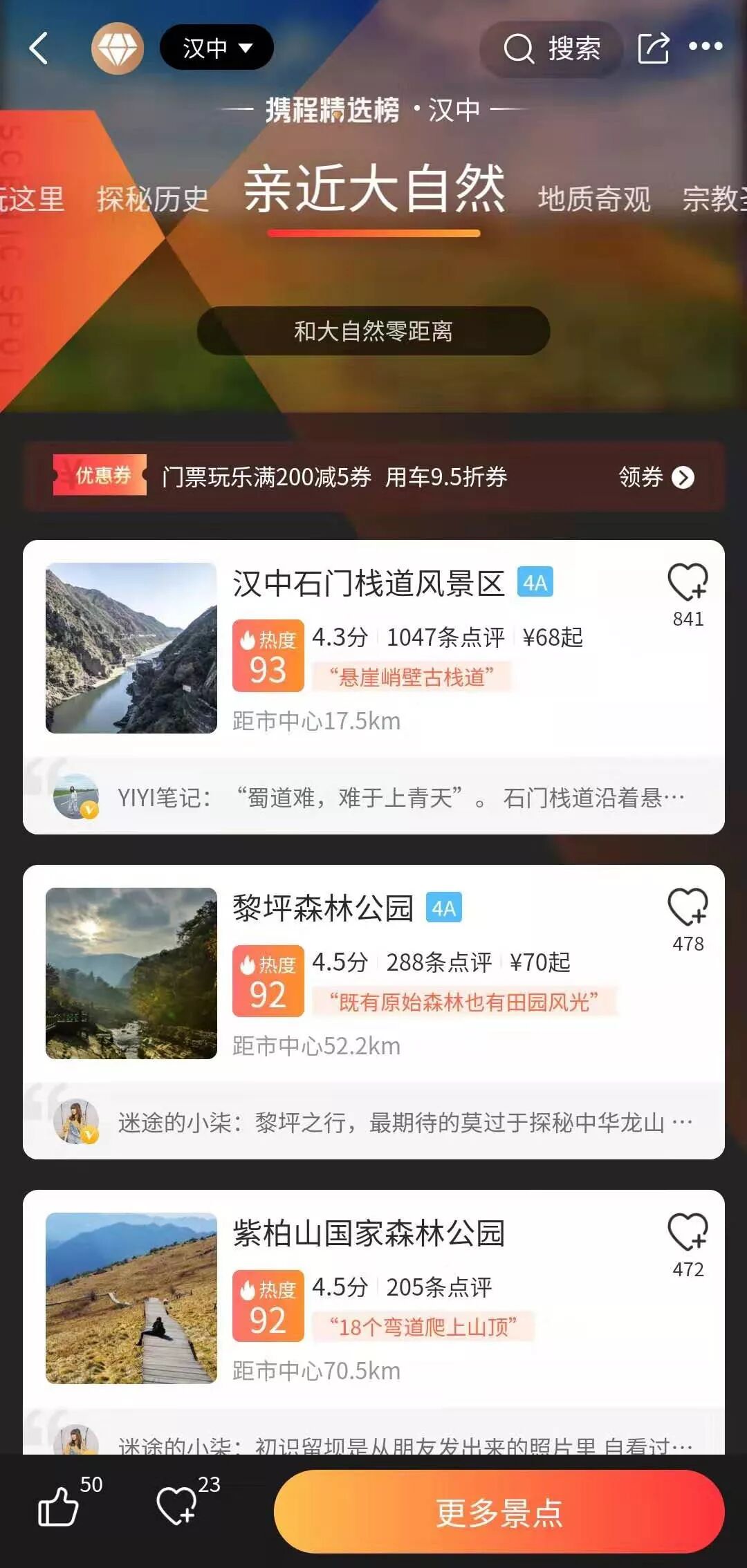 (四)汉中美若仙境景点人气排行榜(跋山涉水,只为“拥抱”你)