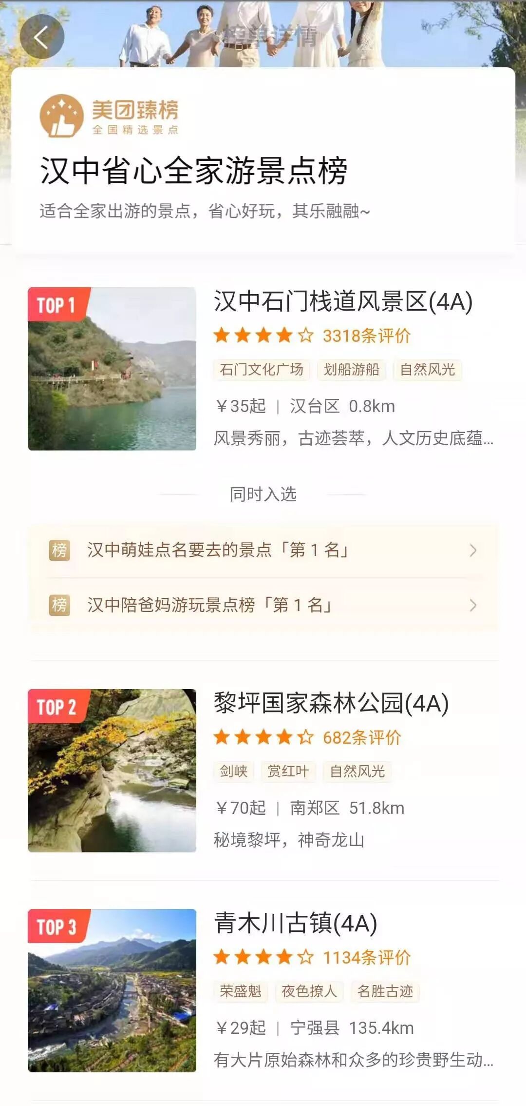 (二)汉中省心全家游景点排行榜(适合全家出游的景点,省心好玩,其乐融融... ...)
