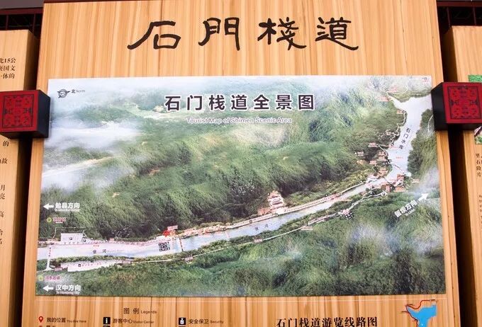 石门栈道风景区地处石门水库,距市区近15公里。1970年修建石门水库,南起汉中褒谷口,北到眉县斜峪关的古老的褒斜栈道大部分沉没在水库中,但石门摩崖石刻如东汉《 石门颂》、《衮雪》、北魏《 石门 铭》等“汉魏十三品”重要石刻被凿迁下来,现陈列于汉中市博物馆(古汉台),而石门和其它石刻,则被淹在了水库之中。为重现古老的栈道奇观,展现楚汉相争的著名历史战役“明修栈道、暗度陈仓”发生地,在古老栈道基础上,抬高路基近八十米,恢复了这一古老的栈道奇观。同时将古栈道的多种建筑形式如“平梁立柱式”、“石积式”“多层平梁立柱加棚盖式”、“千梁无柱式”等在这段栈道复原,重现栈道辉煌。