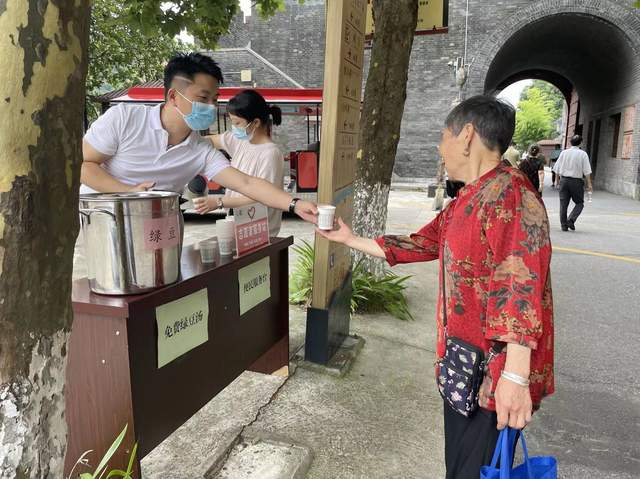 夏日为游客送免费绿豆汤